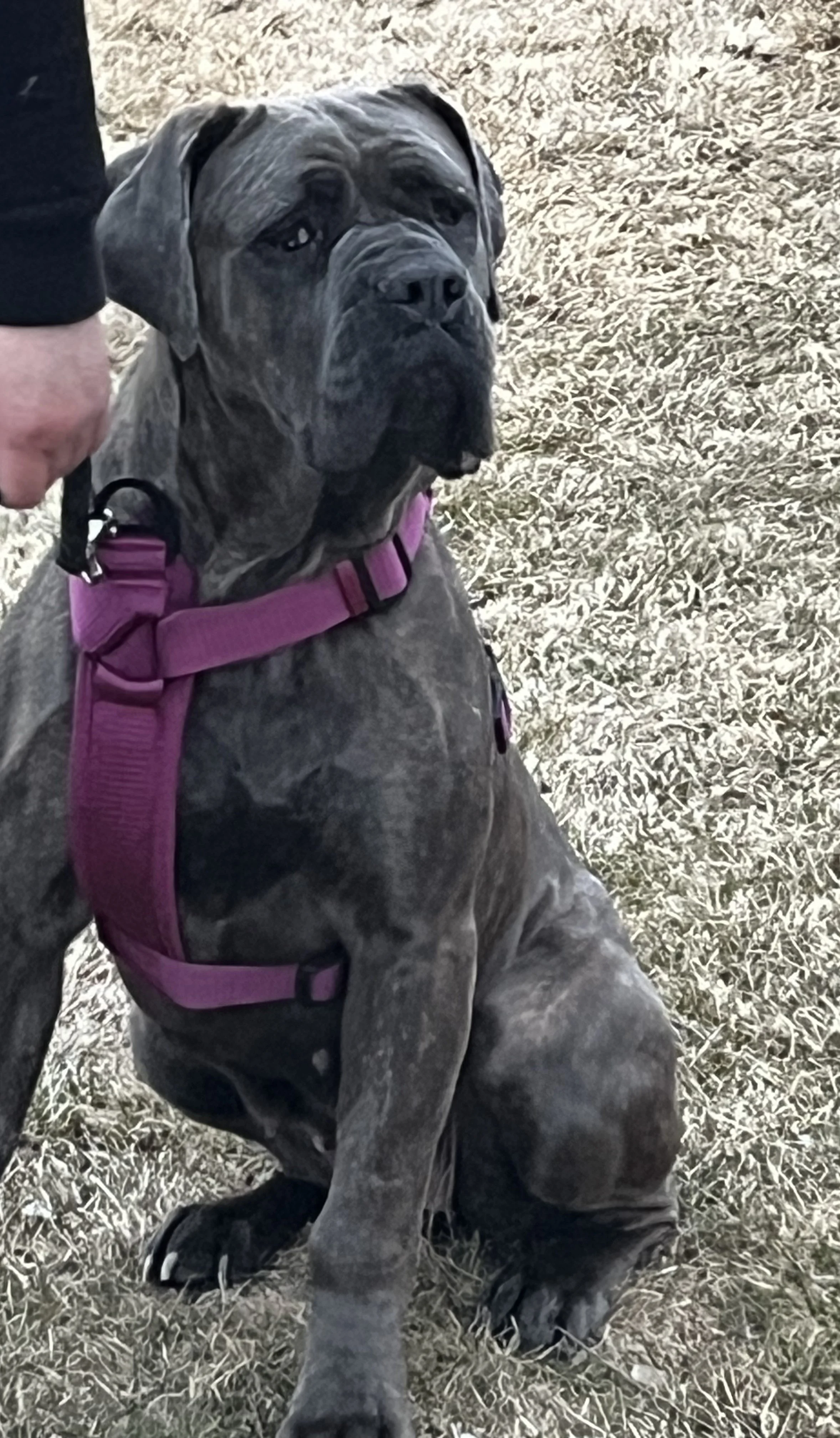 Phoenix is a gorgeous 7 mos old gray bindle purebred Cane Corso. She is good with dogs, cats, and kids. Currently located in Virginia. Adoption fee $400